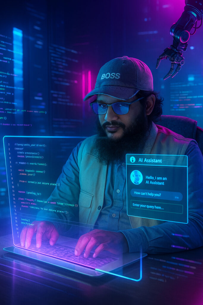 সামাজিক যোগাযোগ মাধ্যমে ব্যবহারের জন্য এ আই দ্বারা তৈরি সাংবাদিক খাইরুল ইসলাম আল আমিন এর ছবি